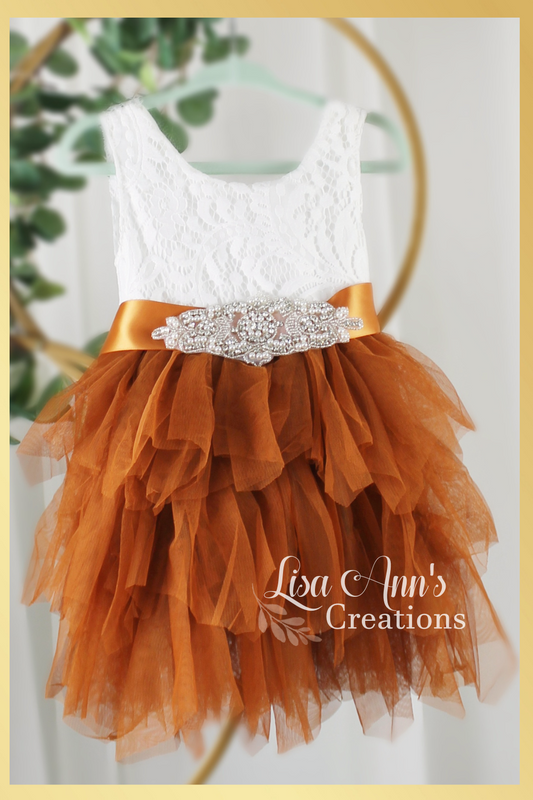 The Tulip - Burnt Orange Flower Girl Dress - Large Flower Sash