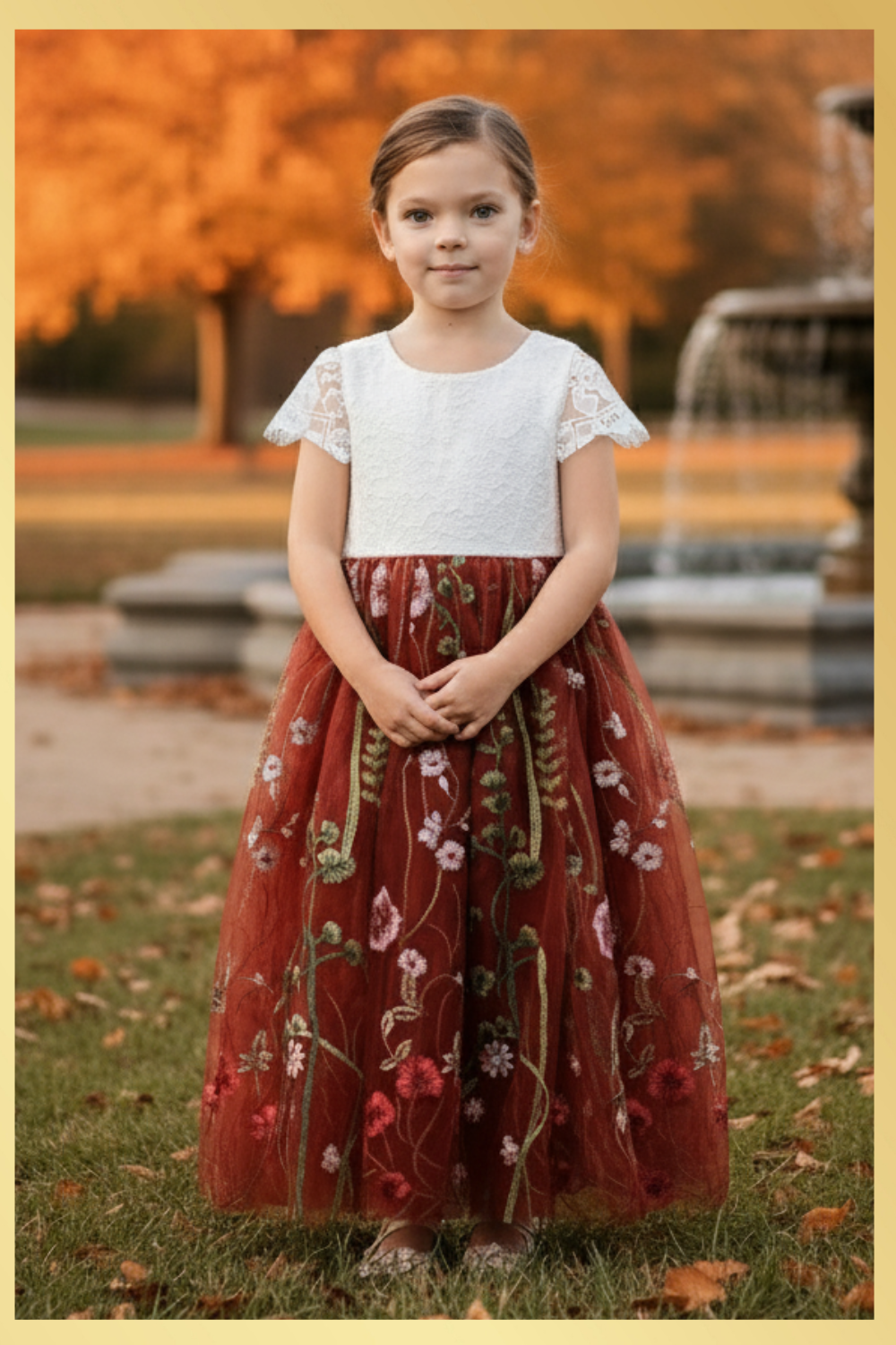 Rust Floral Flower Girl Dress
